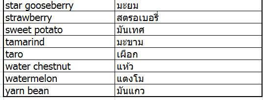 รวมศัพท์ภาษอังกฤษ - ไทย หมวดผลไม้ (fruits)