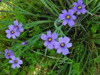 หญ้าบลูอาย มีความสูงประมาณ 6 - 12 นิ้ว ดอกมีกลีบดอก 6 กลีบ มีหลายสี เช่น สีน้ำเงิน ม่วง และเหลือง เป็นพืชทนแล้งได้ ชอบแดดจัด จึงเหมาะสำหรับปลูกประดับในสวนกลางแจ้ง ตกแต่งหน้าบ้าน ฯลฯ
